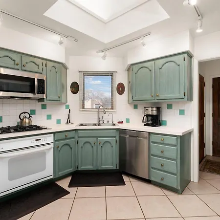 This Santa Fe property includes a full kitchen plus coffee and tea making facilities, a fridge, and oven. The property is also a 15-minute drive from Santa Fe Municipal airport.